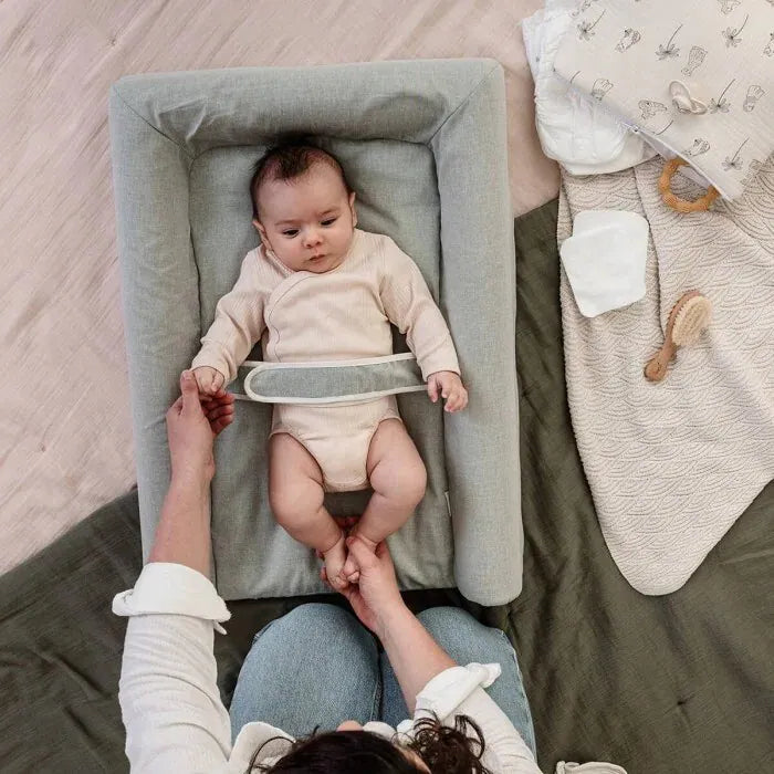 Mat'Confort 舒適換片墊為專利產品,設計有加高護邊,可在換片時更好地保護嬰兒。其安全性更透過可調節的安全帶(能穩固固定寶寶)與防滑底部加強,確保墊子在換片台上保持極佳穩定性。